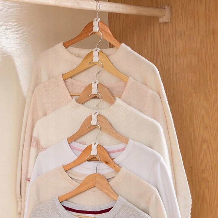 Haczyk umożliwia zawieszenie dodatkowej pary ubrania bądź wieszaków na innym wieszaku. Możliwość pionowego zawieszania jeden pod drugim. Doskonały sposób na oszczędzenie miejsca w ciasnej szafie. Wykonane z wytrzymałego tworzywa sztucznego co gwarantuje długie i bezproblemowe użytkowanie.