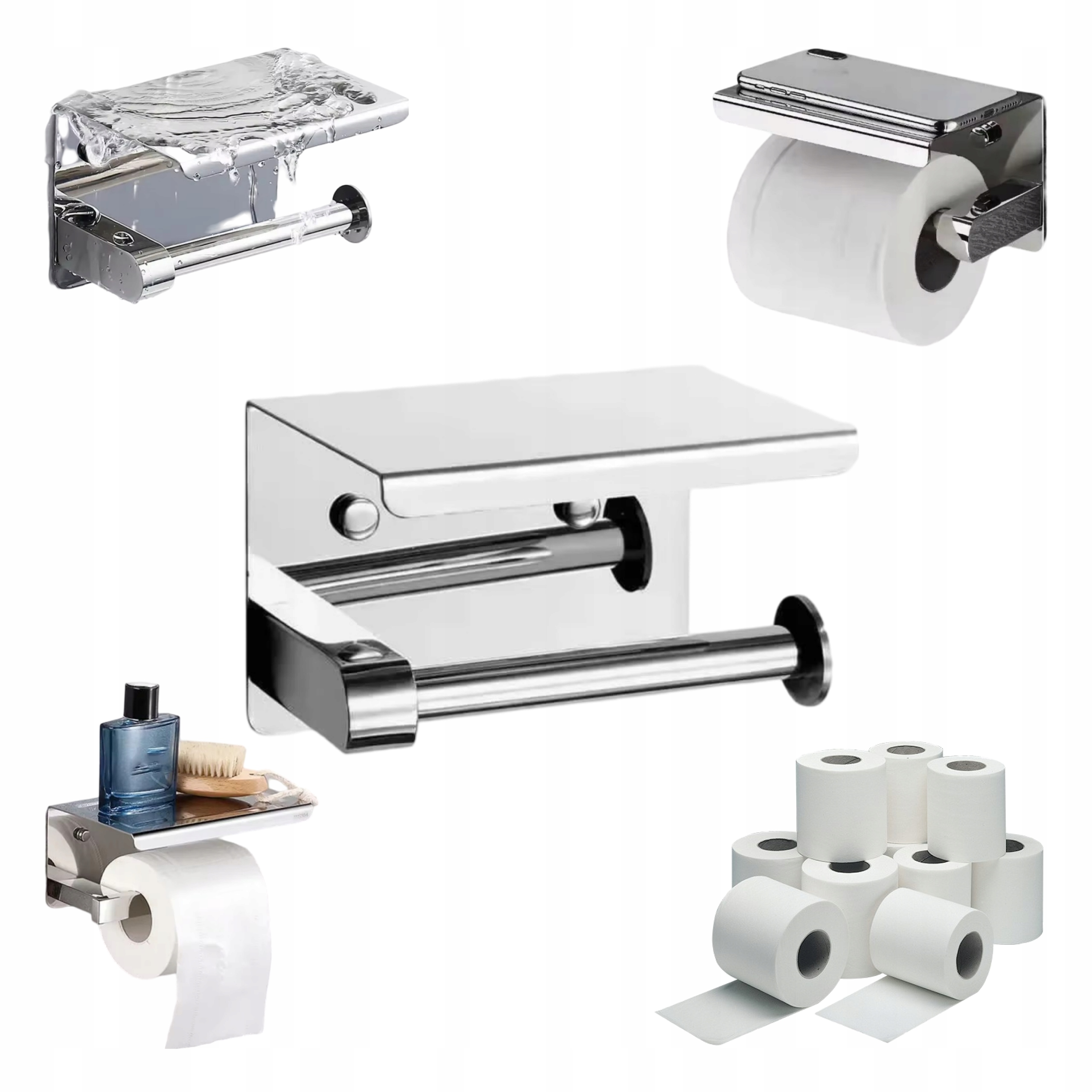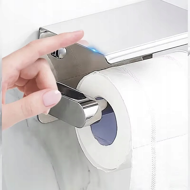 CHROMOWANY UCHWYT NA PAPIER TOALETOWY Z PRAKTYCZNĄ PÓŁKĄ