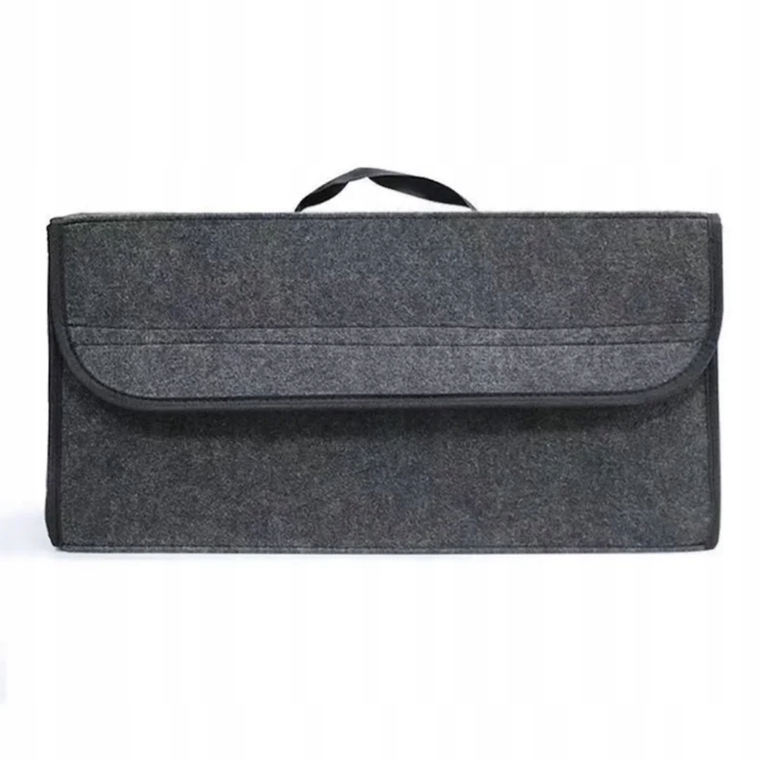 Praktyczny organizer samochodowy przeznaczony do umieszczenia w bagażniku Doskonale sprawdzi się jako zamykany schowek, w którym można w nim trzymać różne, podręczne przedmioty. Wyposażony w pojemną komorę główną oraz klapę zamykaną na rzep. Możliwość wygodnego przenoszenia za pomocą uchwytu w górnej części. Pomaga utrzymać porządek we wnętrzu samochodu. Jest bardzo trwały i łatwy w czyszczeniu – wystarczy przetrzeć go wilgotną szmatką.